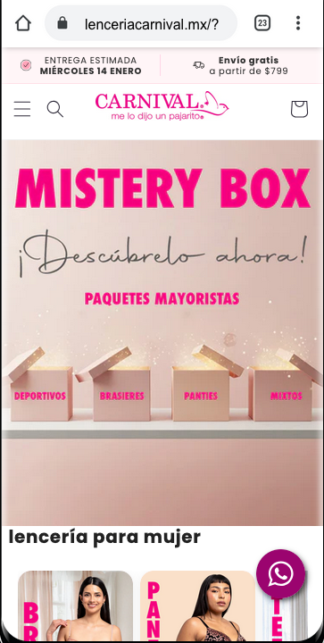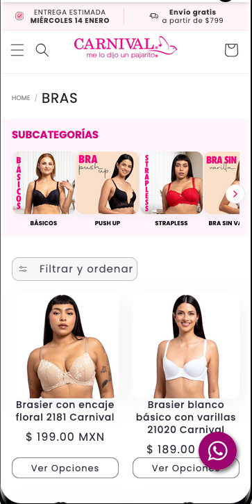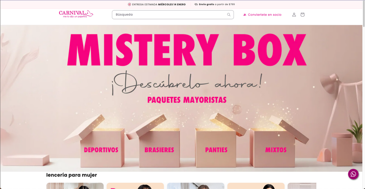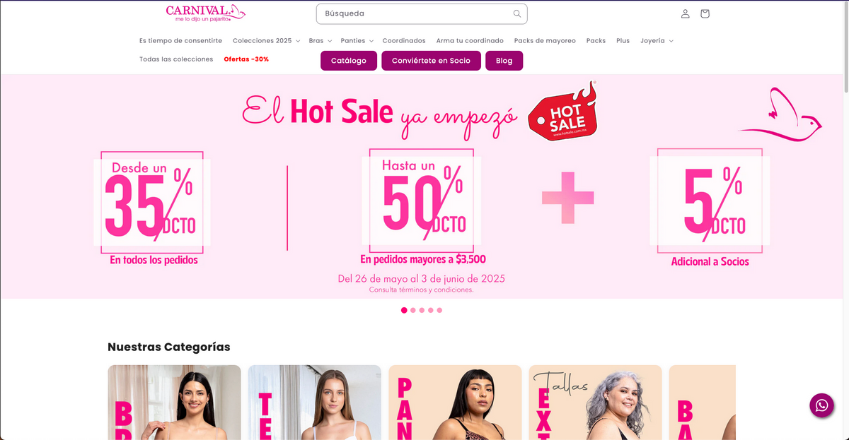 Lencería Carnival es una marca mexicana especializada en lencería femenina, reconocida por ofrecer productos que combinan diseño, comodidad y ajuste. A través de su tienda en línea, la marca busca brindar una experiencia de compra clara y accesible para sus clientas.