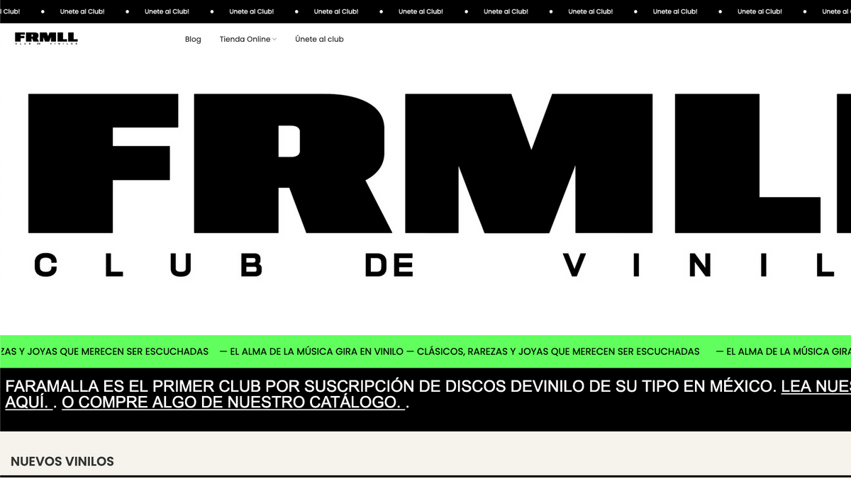 FRMLL es la abreviatura de Faramalla Club de Vinilos, un servicio de suscripción y tienda en línea con sede en México dedicado a coleccionistas de música en formato físico.