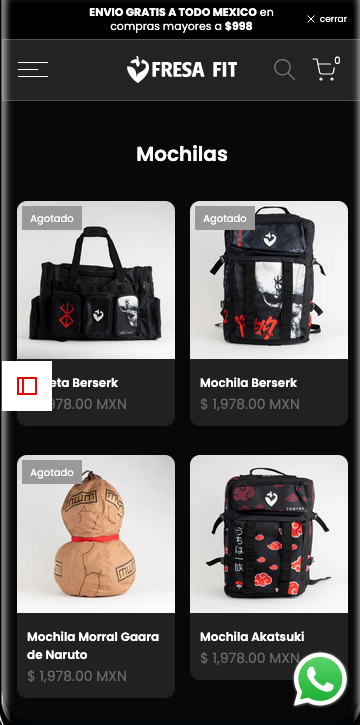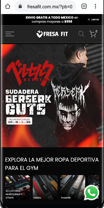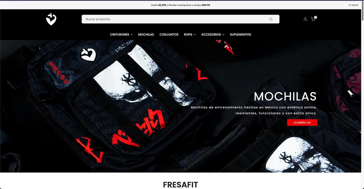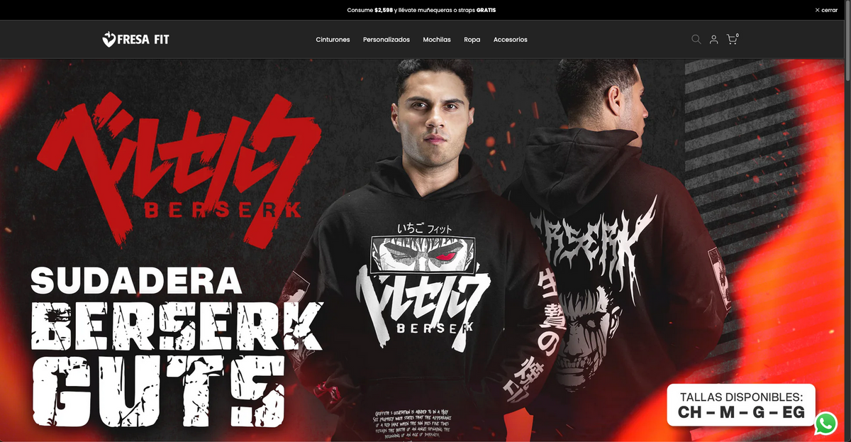 Fresafit es una marca mexicana de ropa y accesorios deportivos de alta calidad, reconocida por sus diseños exclusivos inspirados en anime. Sus productos, hechos en México con materiales premium, están diseñados para ofrecer rendimiento, durabilidad y estilo a atletas y entusiastas del entrenamiento.