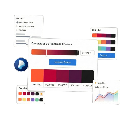 Crea combinaciones de colores armoniosas en segundos con nuestra herramienta gratuita online. Perfecta para diseño web,interfaces de usuario,branding y marketing digital. Genera paletas profesionales basadas en teoría del color, ajusta la cantidad de colores según tu proyecto, y exporta en HEX, RGB o HSL. Con copiado rápido al portapapeles y nombres de colores intuitivos, diseñar nunca fue tan fácil.Compatible con móviles y tablets.